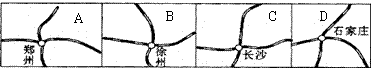 22.下面铁路枢纽图中,属于京广线和陇海线相交点的是( )