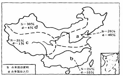 ①a、b、c、d、四区中,人口密度最小的地区是C地区,