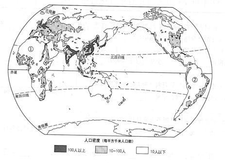 28.读“世界人口的分布图”,回答中考资源网问题。(17分)