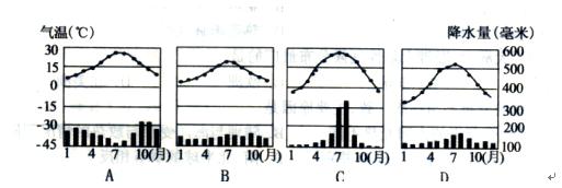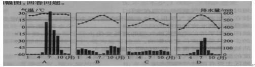 ( 1) 写出图中 A、B、C、D所代表的气候类型名称。(4分)