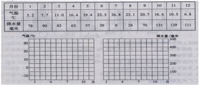 38.根据下列数据绘制气温曲线和降水据柱状图。(5分)