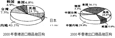 (1)香港进口贸易的地区构成以 为主,出口贸易最多的是 、 两地。(3分)