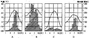 8.下列四幅图“气温曲线与降水柱状图”,能反映河北省的是( )