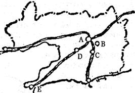 ⑴填注图中工业城市的名称A_____C_____D_____E______