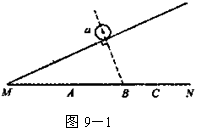 如图9-1,把一带正电的小球a放在光滑绝缘面上,欲使球a能静止在斜面上,需在MN间放一带电小球b,则b应( )