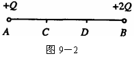 5、(图9-2)A、B两点各放有电量为+Q和+2Q的点电荷,A、 B、C、D四点在同一直线上,且AC=CD=DB.将一正电荷从C点沿直线移到D点,则( )