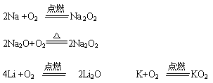 ②碱金属单质在空气或氧气中燃烧时,生成过氧化物甚至比过氧化物更复杂的氧化物,而Li只生成Li2O。