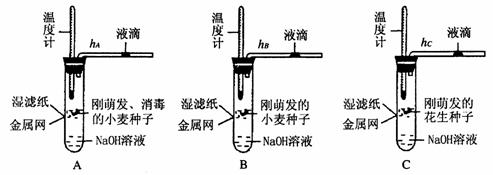 B.当种子中的有机物消耗完毕,温度计读数hB最高