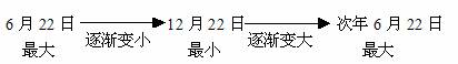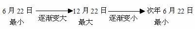 注:赤道上有两次直射,即3月21日、9月23日的正午太阳高度角为900;有两次最小值,即6月22日、12月22日的正午太阳高度角为66034′。