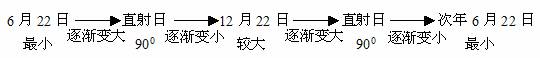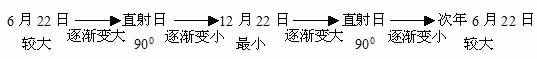 注:北回归线上一年中有一次直射,即6月22日的正午太阳高度角为900。
