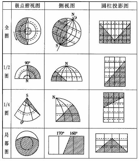 ②春分→夏至→秋分:由南向北昼越来越长,夜越来越短;南极附近有极夜;北极附近有极昼;夏至日时,极昼、极夜范围最大。