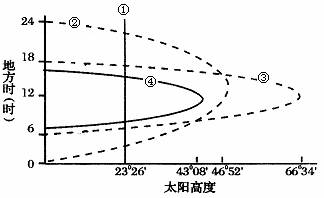(3)①②③三条表示太阳视运动的曲线中,表示冬至日的是________,这一天该地正午太阳高度角是__________。