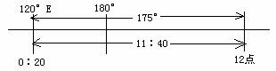 答案:C点拨:当太阳光线处于a位置时,经过a位置的经线位于夜半球正中央,为24点,此时0度经线地方时为20点,可以计算出该地经度为60°E。