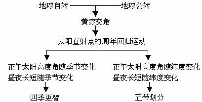③南、北回归线之间的正午太阳高度的变化:一年中有两次太阳直射
