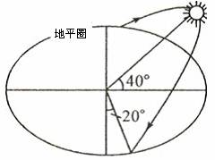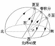 例题1:11月5日,北京(40°N、116°E)当地看到太阳升落的视运动轨迹示意图为