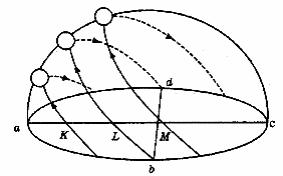 例题2:下图是北纬40°某地二分二至日太阳视运动示意图,K、L、M三条曲线为二分二至日太阳视运动曲线。读图回答(1)-(2)题。
