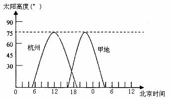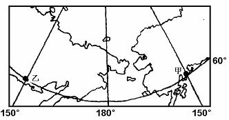 (5)此日某时刻,该纬线上的甲、乙两地的太阳高度均为15°,则甲、乙两地之间最短地面距离是