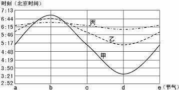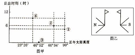 (3)当图中所示地区日出时间为7:30时,其白昼时间为________小时,位于赤道上的某地的日出时间是________。