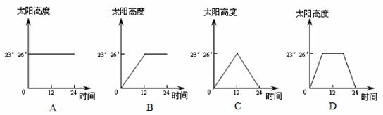 答案:B点拨:该纬线为75°N,当直射点位于15°N时,正好出现极昼,最大太阳高度为30°,最小太阳高度为0°。随着直射点北移,该地持续为极昼,但太阳高度全天在