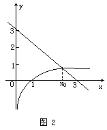 分析:在同一平面直角坐标系中,画出函数y=lgx与y=-x+3的图象(如图2).它们的交点横坐标