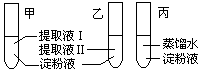 2.将小麦种子分别置于200C和300C培养箱中培养4天,依次取等量的萌发种子分别制成提取液I和提取液Ⅱ。取3支试管甲、乙、丙,分别加入等量的淀粉液,然后按下图加入等量的提取液和蒸馏水,450C水浴保温5分钟,立即在3支试管中加人等量斐林试剂并煮沸2分钟,摇匀观察试管中的颜色。结果是( )
