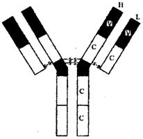 连接起来,呈Y字型。两条相同的短链称为轻链(L链),
