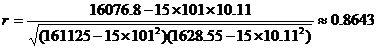 由于n=15,故自由度15-2=13。由相关系数检验的临界值表查出与显著水平0.05及自由度13相关系数临界值