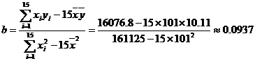 说明:本题若没有告诉我们y与x间是呈线性相关的,应首先进行相关性检验。如果本身两个变量不具备线性相关关系,或者说它们之间相关关系不显著时,即使求出回归方程也是没有意义的,而且其估计与预测也是不可信的。