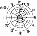 (原创题)中新网2008年2月29日电 国务院副总理、全国老龄工作委员会主任回良玉在全国老龄工作委员会全体会议上指出,中国60岁及以上老年人口2007年底已达到1.53亿人,占总人口的11.6%。快速发展的人口老龄化,已经并将进一步成为影响中国经济社会发展全局的重大战略问题。读“某年我国部分省(市)65岁及以上老年人口比重示意图”,回答1-3题。