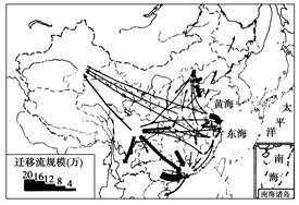 17.(原创题)读“20世纪80年代下半期中国务工经商流动人口示意图”(图1)和“1850年以来美国本土人口迁移的主要流向示意图”(图2),回答问题。