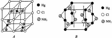 第4题(9分)下图所示为HgCl2和不同浓度NH3-NH4Cl反应得到的两种含汞的化合物A和B的微观结构重复单元图。