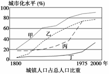 (2009·山东淄博调研)读“甲、乙、丙、丁四国城市化水平变化示意图”,读图完成11-12题。