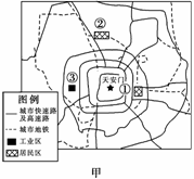 2.根据右图信息,甲城市火力发电站适合选择在 ( )
