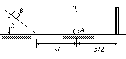 kg的小球A,另一端挂在光滑水平轴O上,O到小球的距离为L=0.1m,小球跟水平面接触,但无相互作用,在球的两侧等距离处分别固定一个光滑的斜面和一个竖直挡板,如图所示,斜面底端与竖直挡板间水平面的距离s为2m,动摩擦因数为0.25.现有一小滑块B,质量也为m,从斜面上滑下,与小球碰撞时木块和小球交换速度,与挡板碰撞不损失机械能.若不计空气阻力,并将滑块和小球都视为质点,g取10m/s2,试问: