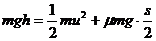 (2)若滑块从h=5m处下滑到将要与小球碰撞时速度为u,同理有