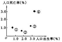 下图是四个国家的人口出生率和人口死亡率图,读下图完成2~3题。