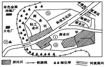 下图是某城镇工业布局图,分析回答下列问题:(共6分)