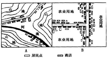 (1)图A和图B中,表示平原商业网点是 图。