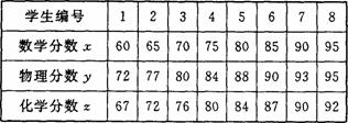例3 为了对2006年我市中考成绩进行分析,在60分以上的全体同学中随机抽出8位,他们的数学(已折算为百分制)、物理、化学分数对应如下表,