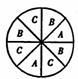 A区域甲胜,指针指向B区域乙胜,指针指向C区域丙胜.