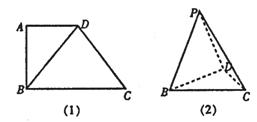 4.如图(1)四边形ABCD中,AD∥BC,AD=AB,∠BCD=45°,∠BAD=90°,如图(2)将△ABD沿对角线BD折起,记折起后点A的位置为P,且使平面PBD⊥平面BCD.