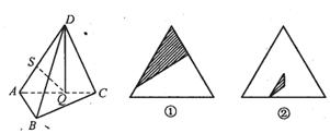 5.如图下左图所示,正四面体D-ABC(四个面是全等的等边三角形,每个顶点在底面的投影是这个等边三角形的中心),S为AD的中点,Q为BC上异于中点和端点的任一点,则△SQD在四个面的射影可能是_______________(把你认为正确的序号都填上,正四面体及在四个面的射影如下右图所示,射影为①②③④中阴影部分三角形).