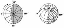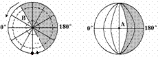 3.左图所示昼夜分布情况,在右图中用阴影作出夜半球示意,并标明A点位置 |