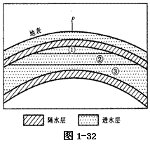 [经典题例](05年全国文综卷)图1-32为某地地层示意。从P点向下钻井,当钻头位于①、②、③ “层”时,可能分别探测到