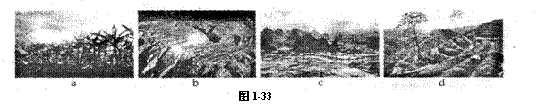图1-33所示的四种景观,同学们乘车途中可能看到的是