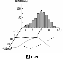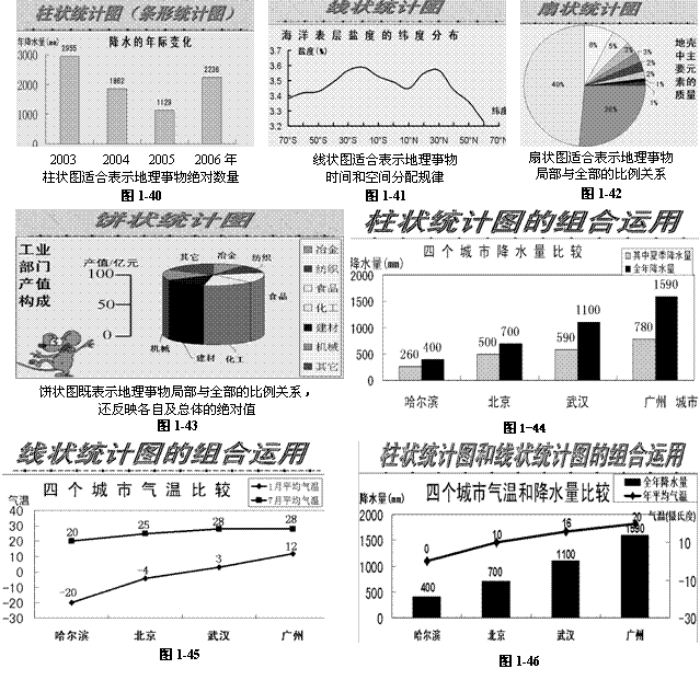 ⑶线状图也可同时反映几项地理事物的时空分配规律→线状组合图(图1-45)。