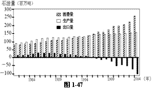 [经典题例](信息迁移题:06江苏高考题)图1-47是“我国石油消费、生产和出口状况变化图”,读图回答下列问题: