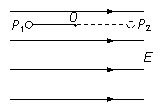 一带正电的小球,系于长为l的不可伸长的绝缘轻线一端,线的另一端固定在O点, 它们处在匀强电场中,电场的方向水平向右,场强的大小为E.已知电场对小球的作用力的大小等于小球的重力,现先把小球拉到图中的P1处,使轻线拉直,并与场强方向平行,然后由静止释放小球.已知小球在经过最低点的瞬间,因受线的拉力作用,其速度的竖直分量突变为零,水平分量没有变化,则小球到达与P1点等高的P2点时速度的大小为