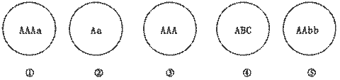 下图中字母表示细胞中所含有的基因,含有2个、3个染色体组的依次是