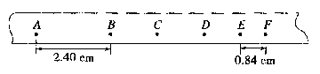 12.如图所示,是打点计时器打出的做匀变速直线运动的纸带,图中A、B、C、D、E、F点是按时间顺序先后打出的计数点(每两个计数点间有四个实验点未画出)。用刻度尺量出AB、EF之间的距离分别是2.40cm和0.84cm,那么小车的加速度大小是__________
